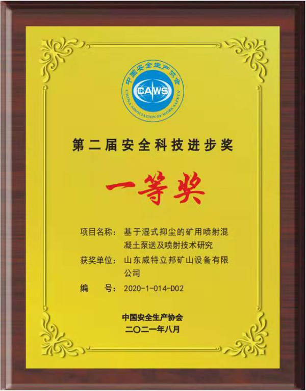 濟(jì)寧市首屆創(chuàng)新大賽“煤礦采掘面濕噴除塵系統(tǒng)設(shè)備”創(chuàng)新組二等獎(jiǎng)